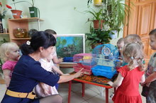 Сегодня мы с малышами решили посетить живой уголок нашего детского сада. Поближе познакомиться с его обитателями. Ребята с удовольствием наблюдали за медлительными черепашками, хомяком, озорным попугаем, но самым интересным было для детей покормить самостоятельно рыбок в аквариуме. Дети получили массу положительных эмоций.