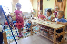 Сегодня празднуется День учителя. Наши старшие ребятишки с удовольствием играли в такие сюжетно-ролевые игры, как «Школа», «Учитель и ученики».