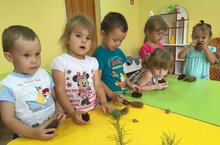 Сегодня мы с ребятами рассматривали еловые и сосновые шишки. Дети активно принимали участие в беседе «Виды шишек». Провели игровой самомассаж шишками с элементами пальчиковой гимнастики, которая способствует активизации речи, развития моторики пальцев рук, релаксации повышения иммунитета детей.