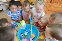 С большим интересом дети послушали «Сказку о рыбаке и рыбке». А с каким удовольствием ребятишки играли в игру-конкурс «Поймай рыбку»!