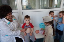 Проверит всем температуру.Дети познакомились с ролью медсестры, ее обязанностями, трудовыми действиями. Делает уколы, закапывает капли в глаза, уши, ставит горчичники, компрессы, смазывает ранки, забинтовывает. Цель: нашей экскурсии в медицинский кабинет закрепить цепочку игровых действий работы медсестры, продолжать учить пользоваться атрибутами, внести заменители. Продолжать работать над активизацией словаря детей.