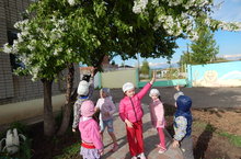 Вся стоит в цвету.Воспитанники старшей и подготовительной к школе подгруппы отправились в путешествие по территории детского сада и наблюдали за цветущей яблоней. Дети учатся замечать изменения во внешнем виде деревьев, видеть красоту ярких красок весны; знакомятся с особенностями весеннего состояния плодовых деревьев (цветение); любуются цветущими деревьями.