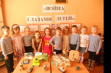 В мини-музее детского сада выставка детских рисунков и поделок "Война глазами детей"