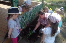 Санитар-экологик айлык кысаларында өлкән төркемдә балалар тәрбияче белән берлектә урамда йөрү өчен чәчәкләр утырттылар. Балалар үсемлекләрнең тормышы, үсемлекләргә су һәм кояшлы ут кирәклеге турында белемнәрен ныгыттылар. Шулай ук алар нарцисс чәчәге турында риваять белән таныштылар һәм кемне шундый исем белән атауларын белделәр. Мондый чаралар балаларда үсемлекләргә карата кызыксыну һәм мәхәббәт, чәчәкләрнең матурлыгын күреп, аларга соклану тәрбияли.