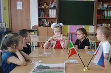 В дошкольном возрасте начинает формироваться чувство патриотизма, включающее любовь и привязанность к Родине, ответственность за неё, желание трудиться на ее благо, беречь и умножать богатства. Любовь к Отчизне начинается с любви к своей малой Родине - месту, где родился человек, где его дом. Дети старшей группы «Лукоморье» в игре знакомились с городами республики Татарстан, их значением, (Заинск, Елабуга, Альметьевск, Чистополь, Арск, Набережные Челны и др.), дети учились осознавать себя живущими в определенный временной период и в то же время приобщаться к богатствам национальной и мировой культуры.