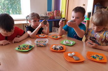 В первой младшей группе воспитатель Светлана Геннадьевна в рамках месячник по ЗОЖ провела комплекс увлекательных занятий на тему"Где живут витамины". Дети рассматривали полезные овощи и фрукты, участвовали в драматизации" Весёлый огород", рисовали продукты в которых содержатся витамины. Целью данных мероприятий было формировать у детей представление о необходимых телу человека веществах и витаминах, рассказать детям о роли витаминов в жизни человека. Познакомить их с понятием «витамины», закрепить знания о необходимости наличии витаминов в организме человека, о полезных продуктах, в которых содержатся витамины. Воспитывать культуру питания, чувство меры и правила культурного поведения