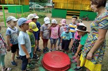В рамках Недели безопасности, проходящей в детском саду, педагог средней группы «Смешарики» Иванова Надежда Сергеевна на прогулке провела беседу «Осторожно, люки». Она рассказала об опасности нахождения около канализационных люков, объяснила, почему нельзя наступать на крышки люка и играть возле них. Во время прогулки, ребята вместе с воспитателем обошли территорию детского сада и определили опасные места: канализационные люки.