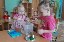 Вода – первый и любимый всеми детьми объект для исследования. Игры с водой поднимают настроение у малышей, дарят им огромное количество положительных эмоций. Особенно важно организовывать игры с водой для детей 2-3 лет. Ребенок в этом возрасте познает и лучше усваивает окружающий мир тактильно и эмоционально. И дети ясельной группы «Лунтик» с воспитателем Волковой А.Р. увидели на практике своими глазами , что соль растворяется в воде, а крупа –нет, что предметы могут тонуть и плавать в воде, узнали, что в тишине можно услышать как вода переливается из стаканчика в стаканчик. Так, играя с водой, малыши лучше узнают окружающий мир. Игра с водой – это отличное настроение, повышенный жизненный тонус, масса полезных впечатлений и знаний.