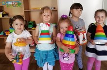 Пирамидка считается первой развивающей игрушкой малыша, которая знакомит его с такими понятиями, как цвет, размер и форма предмета, развивает мелкую моторику, координацию движений, внимание, память и логическое мышление, учит из отдельных составляющих собирать целый предмет. Первую современную пирамидку, привычного для нас вида, с разноцветными кольцами, нанизанными на стержень, изобрела компания Fisher-Price в 1960 году. На этот же год пришелся пик популярности игрушки. Сейчас встречаются не только пластмассовые и деревянные пирамидки классической формы, но и различные пирамидки в форме нанизанных друг на друга колпачков, в форме домиков, растений и даже животных. Одни пирамидки сочетают в себе и функцию игрушек-вкладышей, например, колпачки собираются один в другой по принципу матрешки. Другие – имеют световые и звуковые эффекты. Самое простое, во что можно поиграть с пирамидкой, – это собрать и разобрать ее. А дети второй младшей группы "Гномики" клеили п рамидку из цветной бумаги, играли в различные игры с пирамидой.