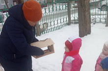 Сегодня на прогулке под руководством воспитателя Айгуль Ренатовны воспитанники ясельной группы «Лунтик» познакомились с кормушкой для птиц. Они рассмотрели формы и сравнили материал из которого сделана кормушка. Дети с удовольствие заполняли «столовую» семенами для птиц в надежде, что их семена помогут справиться с голодом и поддержат пернатых друзей.