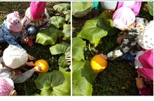 Сегодня воспитатель старшей группы Иванова Н.С. привела детей на экскурсию в огород, где они рассмотрели тыкву. Потрогали огромные, шершавые листья растения, полюбовались «золотым» овощем. Вспомнили, сколько вкусных блюд можно приготовить из тыквы! Урожай тыквы в этом году в нашем детском саду вырос отменный!!!