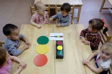 Каждый день, дети нашего сада, совместно со своими воспитателями, закрепляют основные правила, по профилактике дорожно- транспортных детских травм на улицах города и на дорогах. Вот и сегодня, даже наши малыши,не остались в стороне и с интересом стали рассматривать картинки с различными видами транспорта, учатся называть их, показывать, узнавать на улице. Немаловажно знать и различать звуки различных транспортных средств, уметь произносить их. Хорошими помощниками в обучении, для воспитателей являются- книги с историями и рассказами о дороге, транспорте, а так же мультфильмы на эти темы. Наши малыши 2-3 -х лет уже играют в простые игры, моделирующие ситуации на дороге. Так, например, дети с удовольствием запомнят цвета светофора и как действовать, когда горит какой-нибудь свет. Для этого, воспитатели, дают ребенку кружки красного, желтого или зеленого цветов и совмещают их с движениями (стоять не двигаясь, хлопать в ладоши или идти).