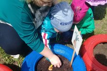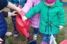 Прогулка "Уход за огородом" 04.06.2018 На участке 1мл.группы "Лунтик" , в результате, совместного труда воспитателя Николаевой С.Г и родителей, на радость всем деткам, расположился "мини огород". Каждый раз, во время прогулки, дети, ведут наблюдения за посаженными культурами.А сегодня, узнали , для чего растения поливают.