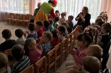 Сегодня, утром на входе в садик, с шарами встречал и поздравлял с праздником всех ребят и родителей- самый настоящий клоун. Затем, наш веселый гость, прошел по группам, и пригласила всех детей и воспитателей в музыкальный зал. Ребят, ждали игры, песни и танцы, а затем просмотр мультфильма о самом замечательном времени года - лете.