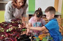 В старшей группе «Лукоморье» прошло занятие «Комнатные растения –спутники нашей жизни» (посадка комнатных растений). Экологические занятия, как одна из форм организации обучения детей, имеют свою совершенно определенную и очень важную функцию. Разнообразная работа с дошкольниками в повседневной жизни, когда воспитатель систематически через циклы наблюдений, трудовую деятельность и общение знакомит детей с объектами природы, позволяет им накопить конкретные представления о природе. Наши ребята уже знают, что за растениями нужно ухаживать: поливать, опрыскивать, рыхлить землю в горшочке, подкармливать удобрениями, пересаживать. Растениям необходимо много солнечного света и тепло. Тогда они будут хорошо расти, развиваться, очищать воздух и радовать нас. «Уход за цветами – занятное дело, за это беремся мы дружно и смело!».
