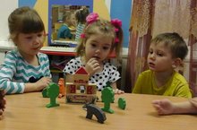 В средней группе «Лукоморье» воспитатель Иванова Н.С. реализует проект поразвитию познавательно-речевой активности детей дошкольного возраста с использованием приёмов мнемотехники «В гостях у сказки». Настольный театр является одним из видов деятельности, предусмотренных проектом. Дети с удовольствием берут на себя роль героев сказки, пытаются передать характер персонажа. Следующим этапом будет пересказ сказки с использованием мнемотаблицы.