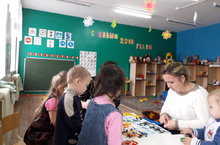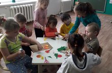 У нас гости .Бывшие выпускники детского сада пришли поирать с детьми . Совместно делали поделки из картона, играли в игры. Было очень весело.