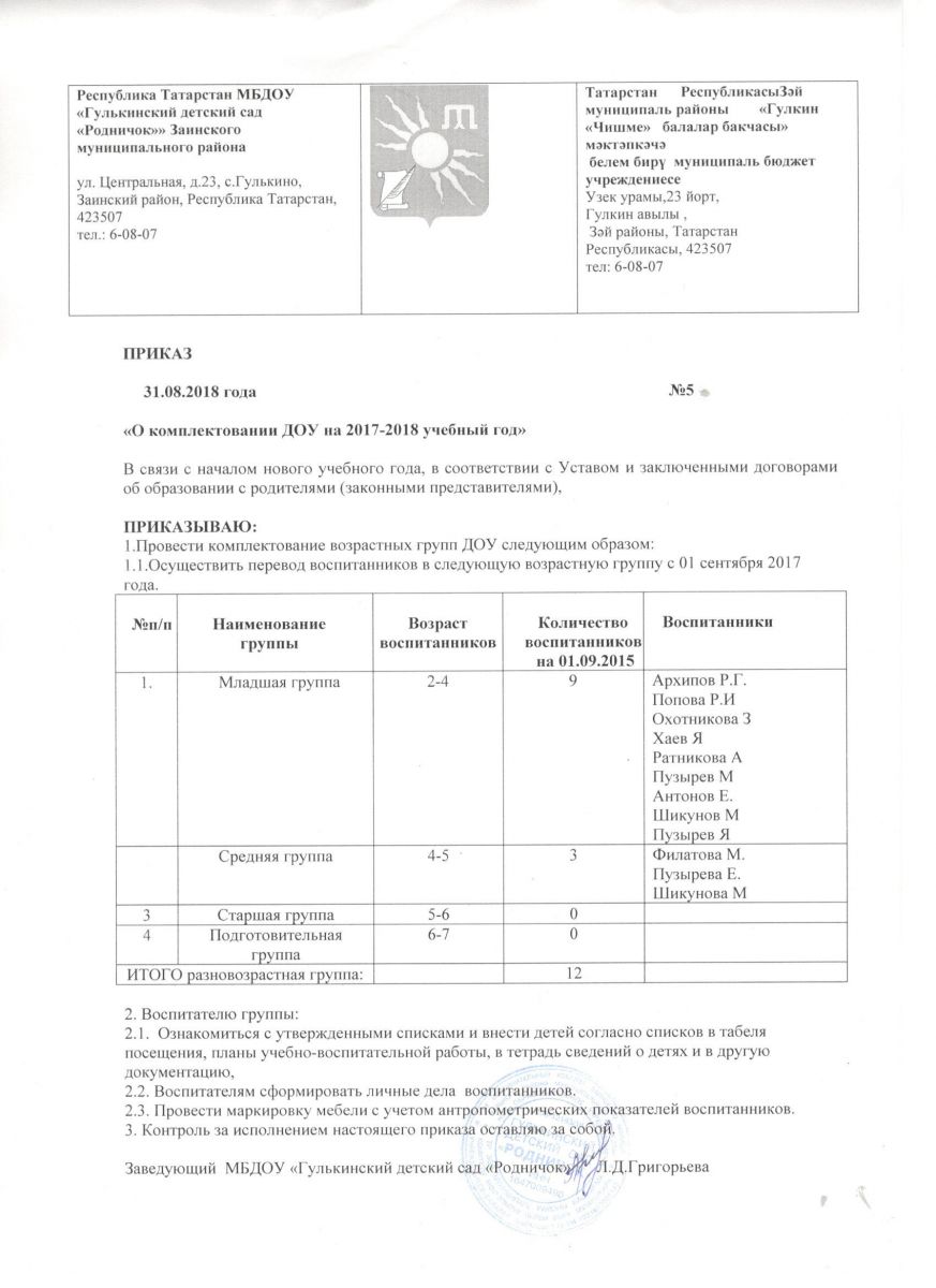приказ № 5 от 31.08.2018 г_ о комплектовании ДОУ 2018-2019 уч год