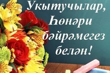 Бәйрәм белән Сезне, укытучым!Йөрәгемнең якын кешесе.Дөнья серен миңа өйрәтүчем.Яшь җаннарга — Ходай илчесе!Сезгә телим саулык, озын гомер,Шәхси бәхет, дөнья рәхәтен.Шәкертләрнең тырыш, инсафлысын.Яхшы гамәл, Ходай рәхмәтен! -