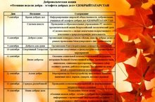 По инициативе Республиканского общественного движения «Вместе с Президентом!» в период с 7 по 14 сентября 2015 года в Республике Татарстан объявляется добровольческая акция «Осенняя неделя добра – эстафета добрых дел» #ДОБРЫЙТАТАРСТАН. -