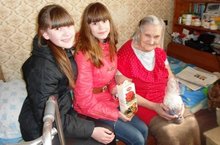 10 апреля 2015 года в рамках "Весенней недели добра 2015" учащиеся 7 В класса навестили труженика тыла Волкову Любовь Александровну и в преддверии Пасхи подарили кулич. -