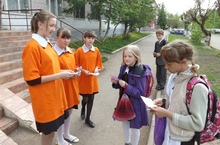 17 мая 2013 года волонтёрский отряд «SOSS» провели акцию на улицах города с раздачей визиток служб детского телефона доверия.