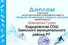 Диплом за участие в квесте "Зимняя олимпиада: вчера и сегодня" 19.02.2022