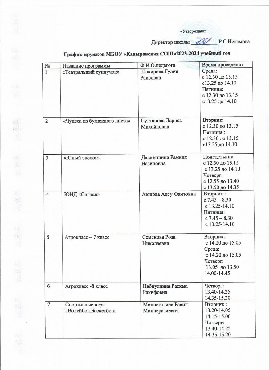 График Дополнительных занятий Точка Роста 2023-2024 учебный год