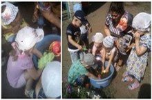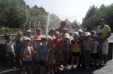 Педагоги группы «Ромашка» (Русанова Н.К., Малюткина В.В.) продолжают знакомить детей с красивейшими местами родного города. Сегодня они провели экскурсию к фонтану, расположенному на центральной площади города. Дети познакомились с историей его создания, полюбовались красотой цветущих рядом с фонтаном клумб и рабаток. Несмотря на то, что лето в этом году необычайно знойное, вся площадь благоухает разнообразием цветов - взрослые заботятся о внешнем облике города, ухаживают за зелеными насаждениями. Дети с большим удовольствием поиграли с бьющими струйками воды. Вернувшись с экскурсии, ребята играли с водой уже на участке детского сада.