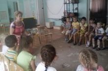 Воспитанники Герасимовой Р.В. ждали встречи с сотрудником центральной библиотеки. И эта встреча состоялась. Дети остались ею довольны, потому что узнали как много интересных книг в библиотеке хранится, с ними можно познакомиться и в читальном зале и взять домой. Маленьким читателям работники библиотеки очень рады. Записаться в библиотеку нужно прийти со взрослыми. Работает она и в субботу - что очень удобно для совместных познавательных походов детей с родителями в выходной день. Книги, с которыми знакомила Шириазданова Нурия Гаязовна, были яркими, красочными. Дети активно включились в диалог – со многими сказочными персонажами они знакомы и потому разговор библиотекаря и детей был интересным и содержательным.