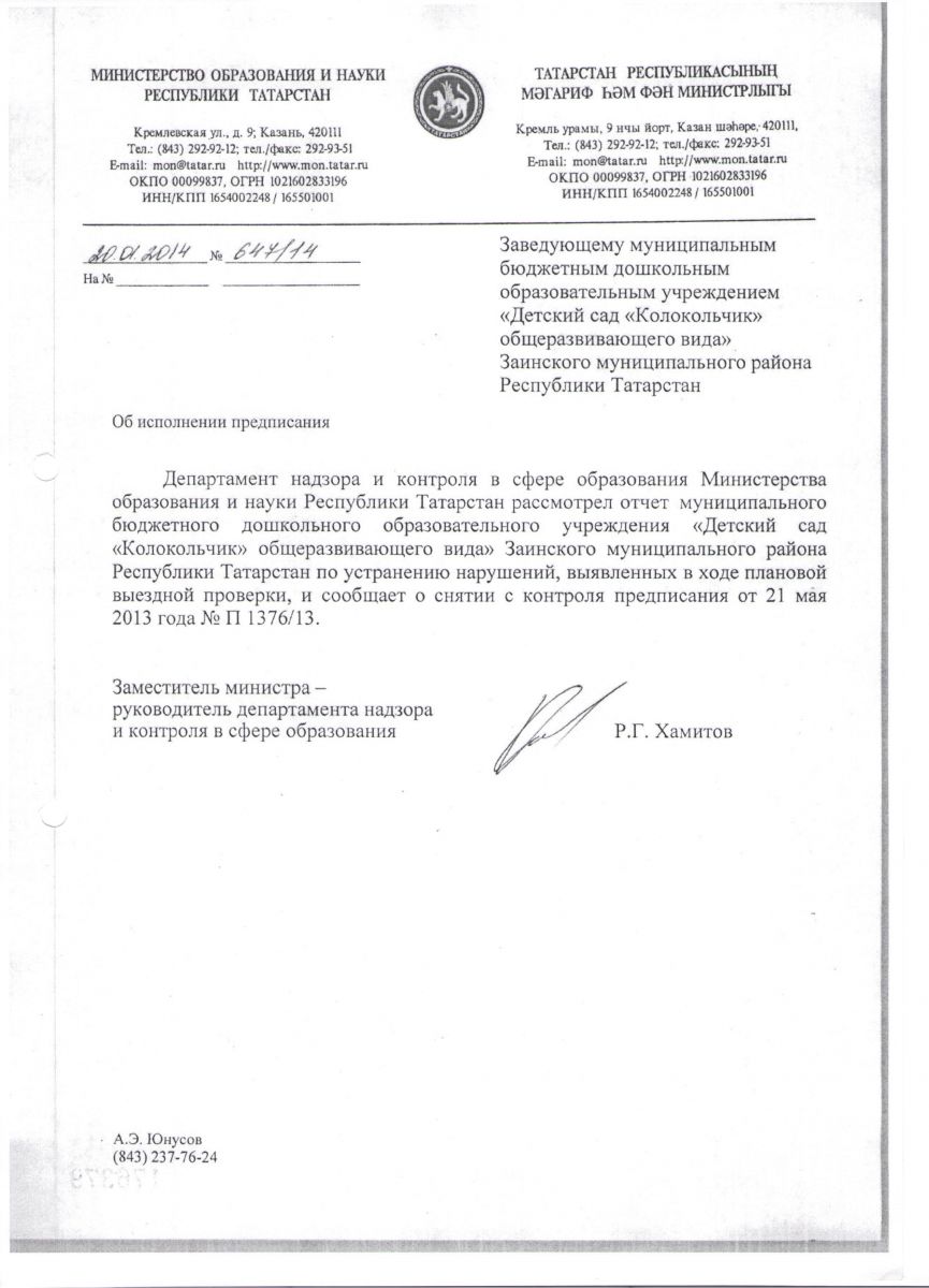 Предписания органов, осуществляющих контроль за 2015год отсутствуют.