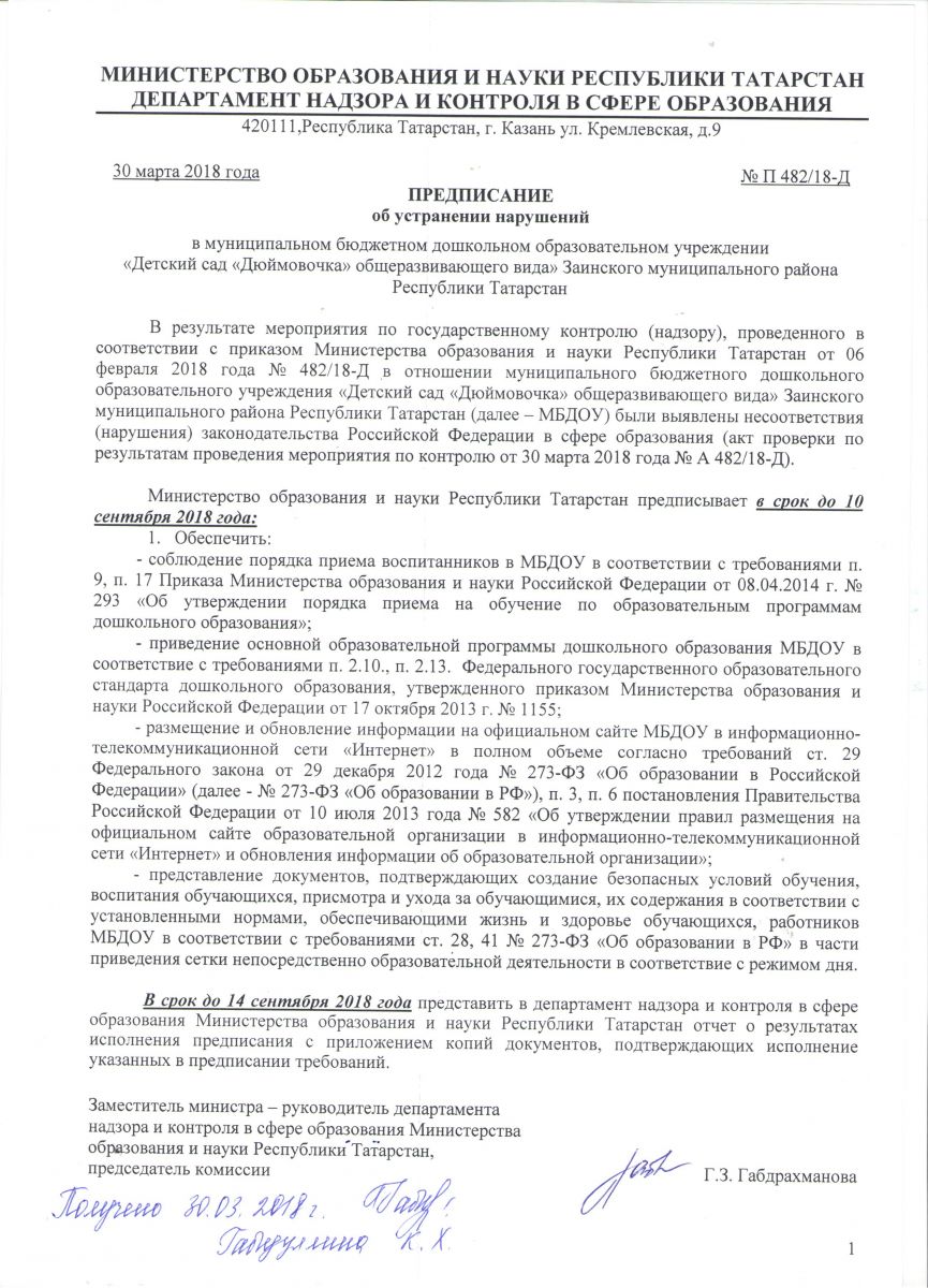Предписания органов, осуществляющих государственный контроль в сфере образования