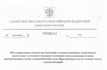 Приказ Министерства спорта Российской Федерации о присвоении нашей спортивной школе статуса: Спортивная школа олимпийского резерва 09.10.2019