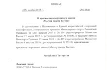 Приказом Министерства спорта России от 7 ноября 2019 года №148нг Лобастовой Полине присвоено звание Мастер спорта России. Её тренирует Рычков Алексей Владимирович. Поздравляем с заслуженным успехом Полину, желаем ей дальнейших побед!