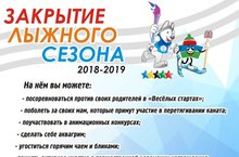 31 марта 2019 года состоится праздник, посвященный Закрытию лыжного сезона 2018-19 года. На этом мероприятии состоится торжественное награждение победителей, призеров, а также детей, участвовавших в соревнованиях "TUOR de SKI ZAINSK", состоится красочное мероприятие для детей и родителей. Приглашаем всех желающих поучаствовать в спортивных играх на свежем воздухе в воскресенье 31 марта к 10 часам 30мин. на стартовую площадку лыжной базы по ул.Аглямова, 17.