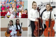В этом учебном году в состав оркестра вошли и наши виолончелисты - это Уразайкина Виктория и Столярова Арина (воспитанники преподавателя Кадыровой Люции Павловны). -
