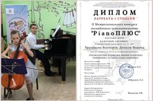 Стали известны результаты Межрегионального конкурса ансамблевого исполнительства "Piano плюс" в заочном формате. В жюри - доцент кафедры фортепиано Самарского государственного института культуры, солист Самарской государственной филармонии, лауреат Международных конкурсов П.А.Назаров, преподаватели музыкальных колледжей Казани и Нижнекамска. В номинации "Камерный ансамбль" выступили Уразайкина Виктория (виолончель, преподаватель Кадырова Люция Павловна) и Денисов Никита (фо-но, преподаватель Тимофеева Татьяна Александровна). Ансамбль завоевал звание Лауреата I степени. Поздравляем преподавателей и учащихся с прекрасными результами!