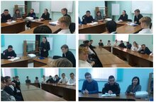 В ГАПОУ "Заинский политехнический колледж" прошёл круглый стол на тему "Коррупция" с приглашенными начальником участкового опорного пункта №2 Тибиловой Л. Н., начальником по делам несовершеннолетних Мингазовым Рамисом Мухаметдиновичем, начальником отделения экономической безопасности и противодействия коррупции Калчериным В. Ю., сотрудником уголовного розыска Сибгатуллиным И. Э., и группой 1221