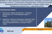 23 сентября 2022 года в ГАПОУ «Заинский политехнический колледж» прошло мероприятие «История успеха», посвященное Дню среднего профессионального мероприятия в формате круглого стола для студентов первого курса по профессии «Повар, кондитер» и «Мастер сельскохозяйственного производства»