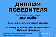 Студенческая экокоманда "ЭКО-СТАЙЛ" офлайн-победитель 01.02.2022