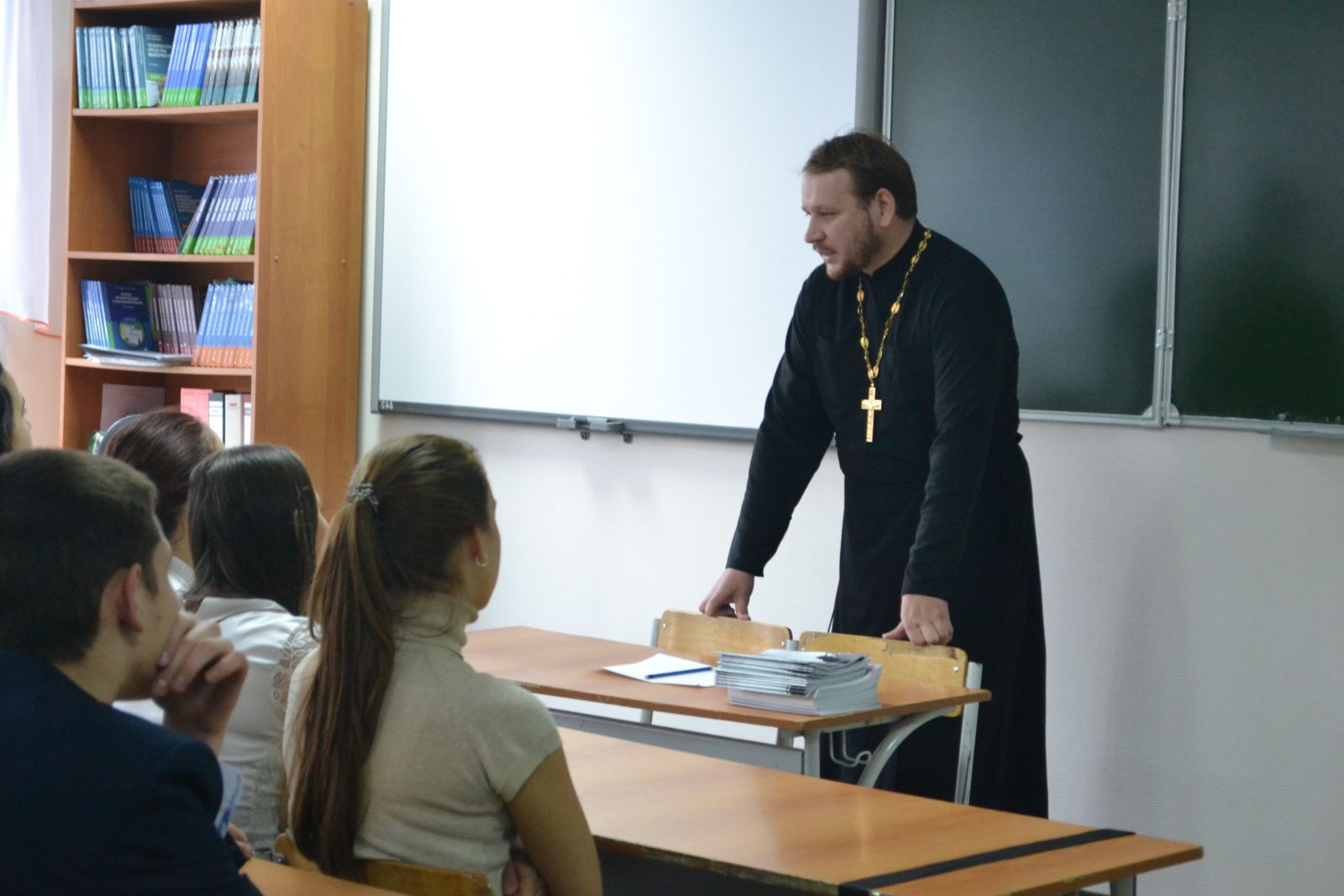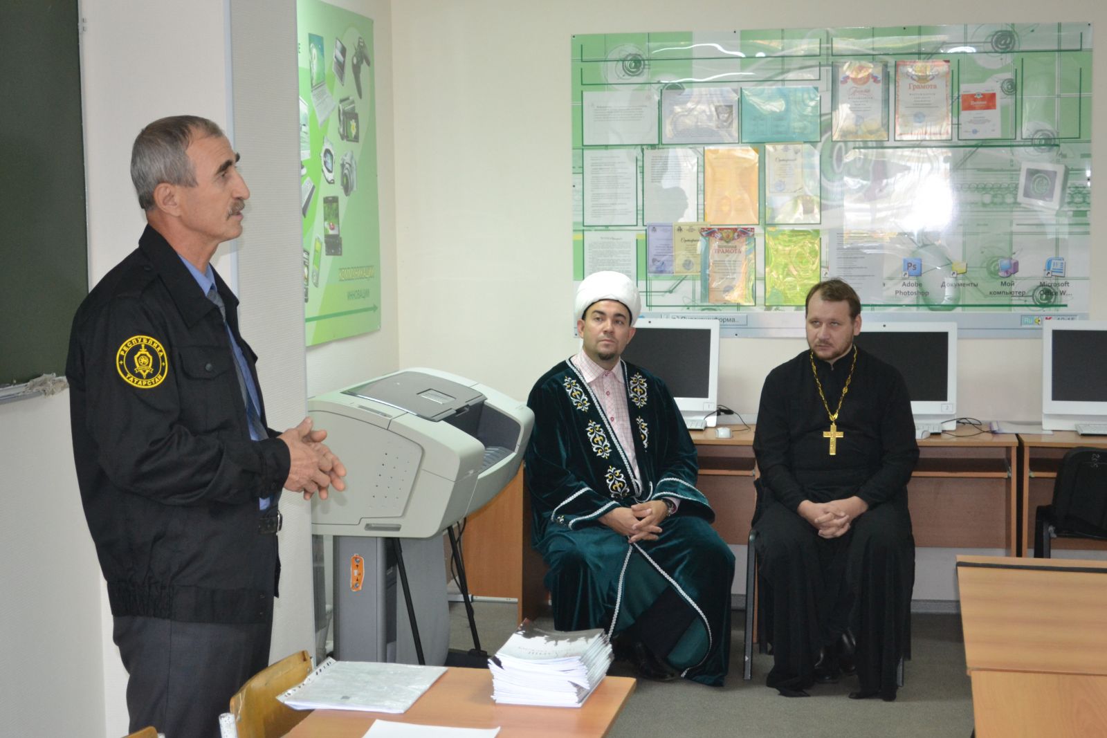 Опубликовано: 29.09.201629 сентября в рамках месячника «Экстремизму – нет!» в Заинском политехническом колледже прошло две встречи. Студенты I курса встречались с ветераном МВД Зелениным В.Т. Он рассказал несовершеннолетним студентам о возможных террористических атаках в транспорте, о правилах безопасного поведения на железнодорожной дороге. Для старшекурсников прошла встреча с представителями духовенства Заинского муниципального района: Имамом – мухтасибом Заинского мухтасибата Фатихом Хазратом и Настоятелем Свято – Троицкого собора г. Заинска Протоиереем Андреем. Священнослужители рассказали молодым людям об истинных ценностях ислама и православия, причинах вербовки молодёжи в террористические организации, необходимости толерантного отношениях между представителями официальных конфессий.