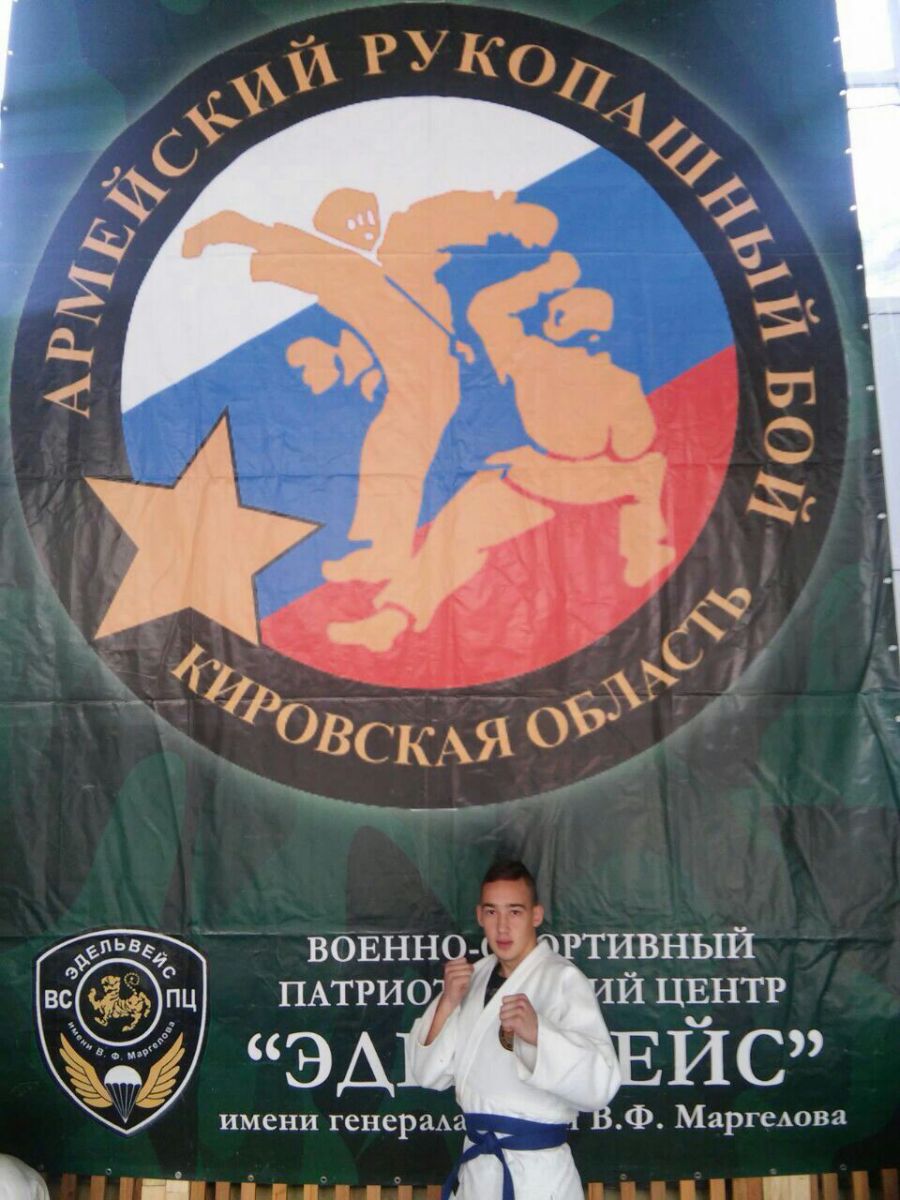 Опубликовано: 31.10.201629 и 30 октября в посёлке Красная поляна Кировской области состоялся VIII Всероссийский турнир среди юношей и мужчин по армейскому рукопашному бою, посвящённый памяти Камалиева Эдуарда. Заинский политехнический колледж на этих соревнованиях представляли студенты I курса Фаттахов Булат и Миронов Пётр под руководством своего тренера, преподавателя ОБЖ колледжа Наумова Д.А. По итогам соревнований Миронов Пётр стал призёром, заняв II место, в весовой категории до 65 кг в возрастной группе 16 – 17 лет.