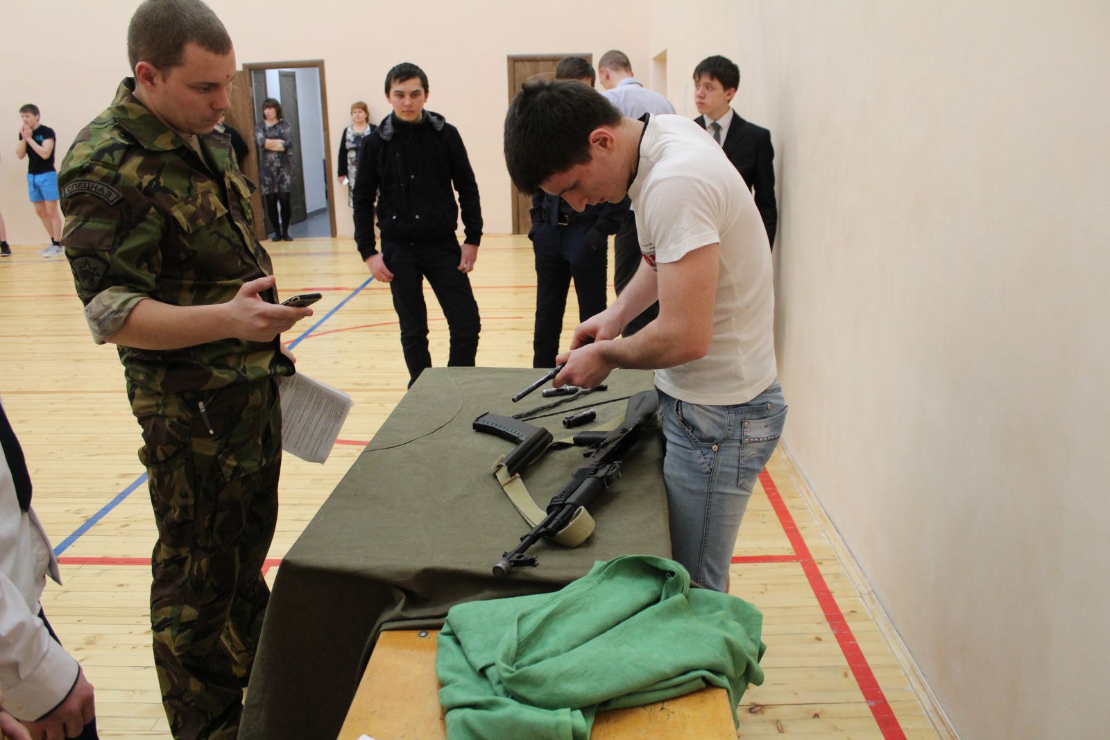 Опубликовано: 06.02.20176 февраля в Заинском политехническом колледже стартовали соревнования по военно–прикладным видам спорта в рамках месячника гражданско-патриотического воспитания. В программу соревнований включены следующие испытания: подтягивание, поднимание туловища за 1 минуту, сгибание и разгибание рук в упоре лежа, сгибание - разгибание рук в упоре на брусьях, челночный бег, надевание общевойскового защитного комплекта, стрельба из пневматической, надевание противогаза, неполная разборка-сборка автомата АК-74М, снаряжение магазина АК-74М. Главный судья соревнований – преподаватель ОБЖ Наумов Д.А. Судьями на этапах стали работники колледжа и члены студсовета. Первыми свою начальную военную подготовку продемонстрировали студенты I курса. 7 февраля пройдут соревнования среди юношей II курса. 8 февраля – среди юношей III и IV курсов. По итогам трёх дней соревнований будут выявлены сильнейшая команда курса, сильнейшая команда колледжа и победители по отдельным видам испытаний.