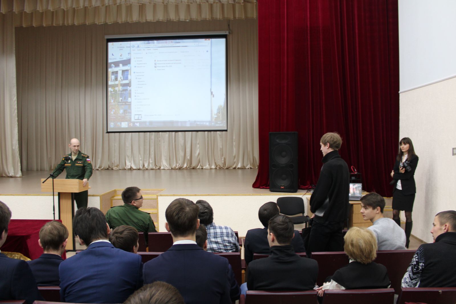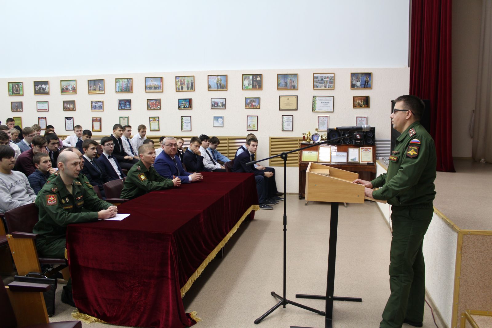 Опубликовано: 15.02.201714 февраля в рамках месячника гражданско - патриотического воспитания в Заинском политехническом колледже прошла встреча юношей выпускных групп в военкомом города Заинска и начальником пункта отбора на военную службу по контракту. В ходе встречи ребятам рассказали о преимуществах контрактной службы, были продемонстрированы видеоролики о службе контрактников. Многие юноши после окончания встречи остались в зале с гостями, чтобы задать свои вопросы, обменяться контактами, уточнить отдельные моменты.