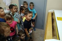 Сегодня в средней группе «Золотые зёрнышки» было необычное путешествие. Они отправились на экскурсию в прачечную и познакомились с работой прачки. Дети были очень внимательны, они с интересом слушали работника прачечной. Евгения Владимировна рассказала об оборудовании, о том, что после стирки чистое бельё сушат в сушильных машинах – барабанах. Высушенное бельё обязательно нужно погладить, для этого в прачечной установлена чудо-машина «Каландар», в переводе с греческого языка значит «валик» или «каток». Ребят очень заинтересовала чудо-машина. Они с большим интересом её рассматривали. Эта экскурсия была очень познавательная, и дети были очень довольны.