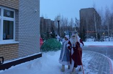 Наступает Новый год! Дед Мороз со Сгегурочкой к нам в детский сад идёт. Добрый Дедушка Мороз со своей внучкой пришел в детский сад, чтобы посмотреть: всё ли готово к празднику?! Покрыта ли земля снежным покрывалом? Хватает ли ребятам снега для игр и построек? Наряжена ли ёлочка? Дедушка обошел дозором всю нашу территорию и здание: всё ли в порядке? Старшие ребята, увидев Мороза в окна, радостно ему махали руками и кричали: "Мы ждём тебя, Дедушка Мороз!" Особенно повезло ребятам средних групп: окна их игровых комнат на первом этаже. Они увидели вблизи Деда Мороза, который приветливо помахал им рукой и показал мешок с подарками. Довольные и счастливые, дети уже завтра будут встречать Деда Мороза со Снегурочкой на нашем первом празднике.