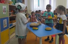 Бүген “ Сандугачлар ” төркеме балалары белән “ Татар халык ашлары ” темасына әңгәмә үткәрдек. Сөйләшү барышында балалар “ Кибет”, “Кафе” кебек сюжетлы-рольле уеннар уйнадылар. Уеннар аша ашларның исемнәрен тиз истә калдыруга ирештек.