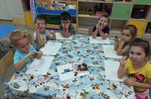 Нетрадиционные техники рисования – важнейшее дело эстетического воспитания, это способы создания нового, оригинального произведения искусства, в котором гармонирует всё: и цвет, и линия, и сюжет. Это огромная возможность для детей думать, пробовать, искать, экспериментировать. А самое главное самовыражаться. Вот и сегодня воспитатель Талибуллина О. Р. и воспитанники из средней группы "Самоцветики" с помощью пальчиков дорисовывали яблочки на волшебном дереве. Рисуя пальцами, дети получают необыкновенное чувственное наслаждение при тактильных контактах с краской, бумагой, водой.