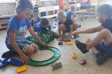 С целью развития технических и творческих способностей, что способствует гармоничному развитию личности ребёнка, дети старшей группы «Волшебники» увлеченно строят автодорогу, по которой ездят машины. Дети чувствуют себя настоящими творцами.