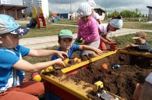 Одним из любимых занятий детей в теплое время года является игра в песочнице. Это естественная и доступная для ребенка деятельность. Является прекрасным средством для развития мелкой моторики рук, творческих способностей. Воспитанники средней группы "Звездочки" любят играть в песочнице различные игры: "Строим город", "Ищем клад", "Учимся готовить".